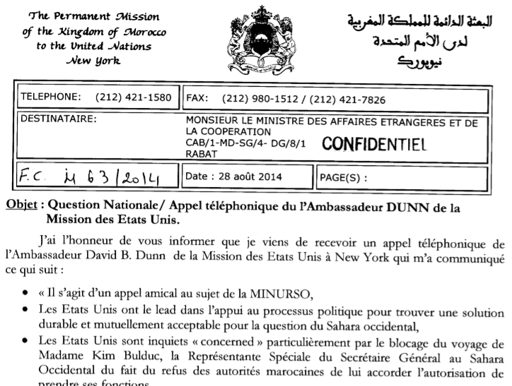Autrement dit, Ross et sa nouvelle collaboratriceMme Bolduc ont reçu un appui de Washington. Du coup, la Monarchie voit rouge. Surtout que John Desrocher aurait déclaré aux officiels marocains ne pas comprendre «le refus permanent» du Maroc d’accueillir Mme Bolduck et de continuer à surseoir à la visite de Christopher Ross. Il est évident que le Royaume, qui est habitué à choisir presque les diplomates onusiens qui s’occupent du dossier sahraoui, est mis hors jeu. Le fait est que Christopher Ross est définitivement acquis à l’idée que le Sahara occidental est un «territoire non autonome», conformément au Droit international et aux Résolutions des Nations unies